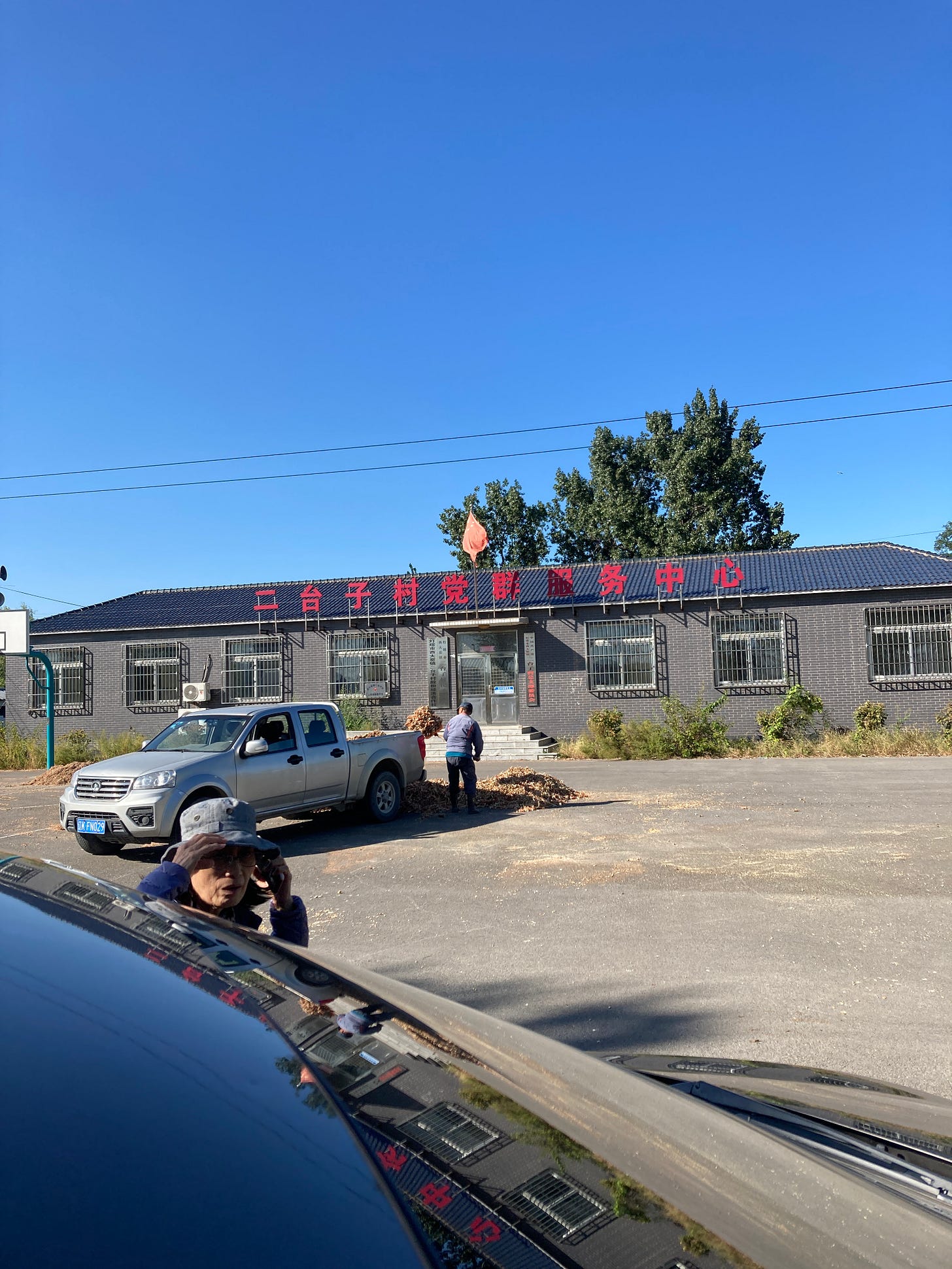 We drove another hour away to the correct village this time, but this neighborhood was even more spread apart, and there were no official landmarks or police stations in sight. We stopped in a random parking lot to ask for help from two workers shoveling corn husks into the back of a truck.